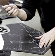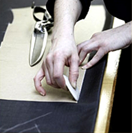 一套凱利易紳正裝,且體師要進行20—30個數(shù)據(jù)的測量,在做的過程中,還要隨時找到身上的細微變化,以確保數(shù)據(jù)準(zhǔn)確無誤,并留下相關(guān)的影像資料備用.然后工藝師核對相關(guān)數(shù)據(jù),用紙板打出紙樣,進行面料的裁剪。